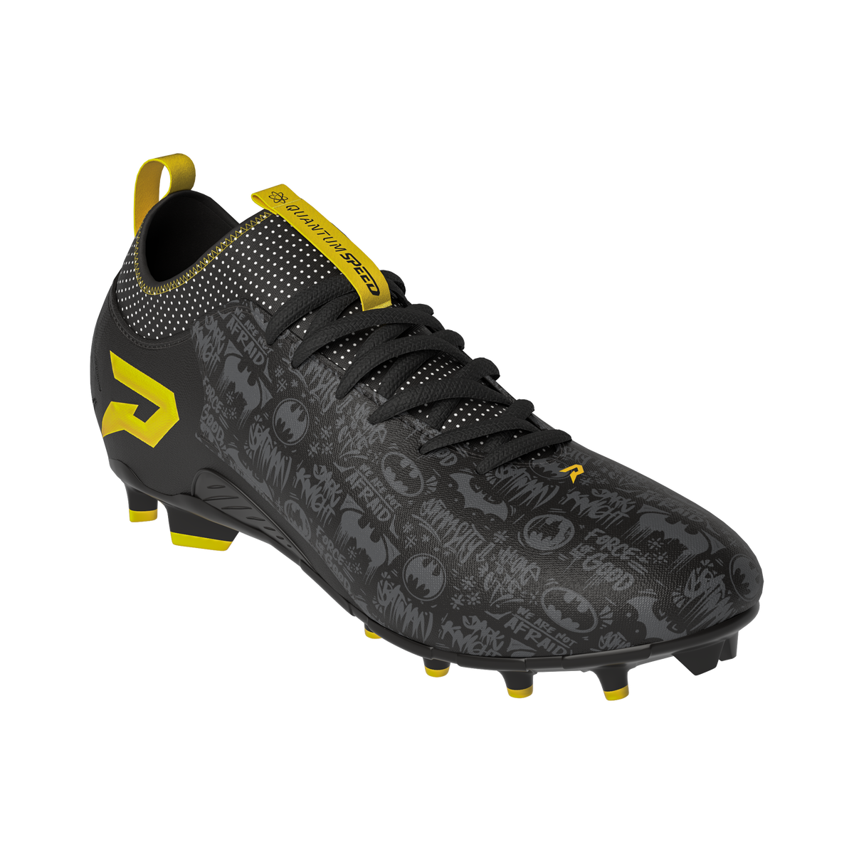 Inspired by the gritty streets of Gotham City, these Quantum Speed cleats are crafted with an edgy black color way, complete with iconic Batman details.The perfect blend of premium quality, lightweight design, and exceptional durability. Crafted from the finest materials, these cleats are designed to take your game to the next level.