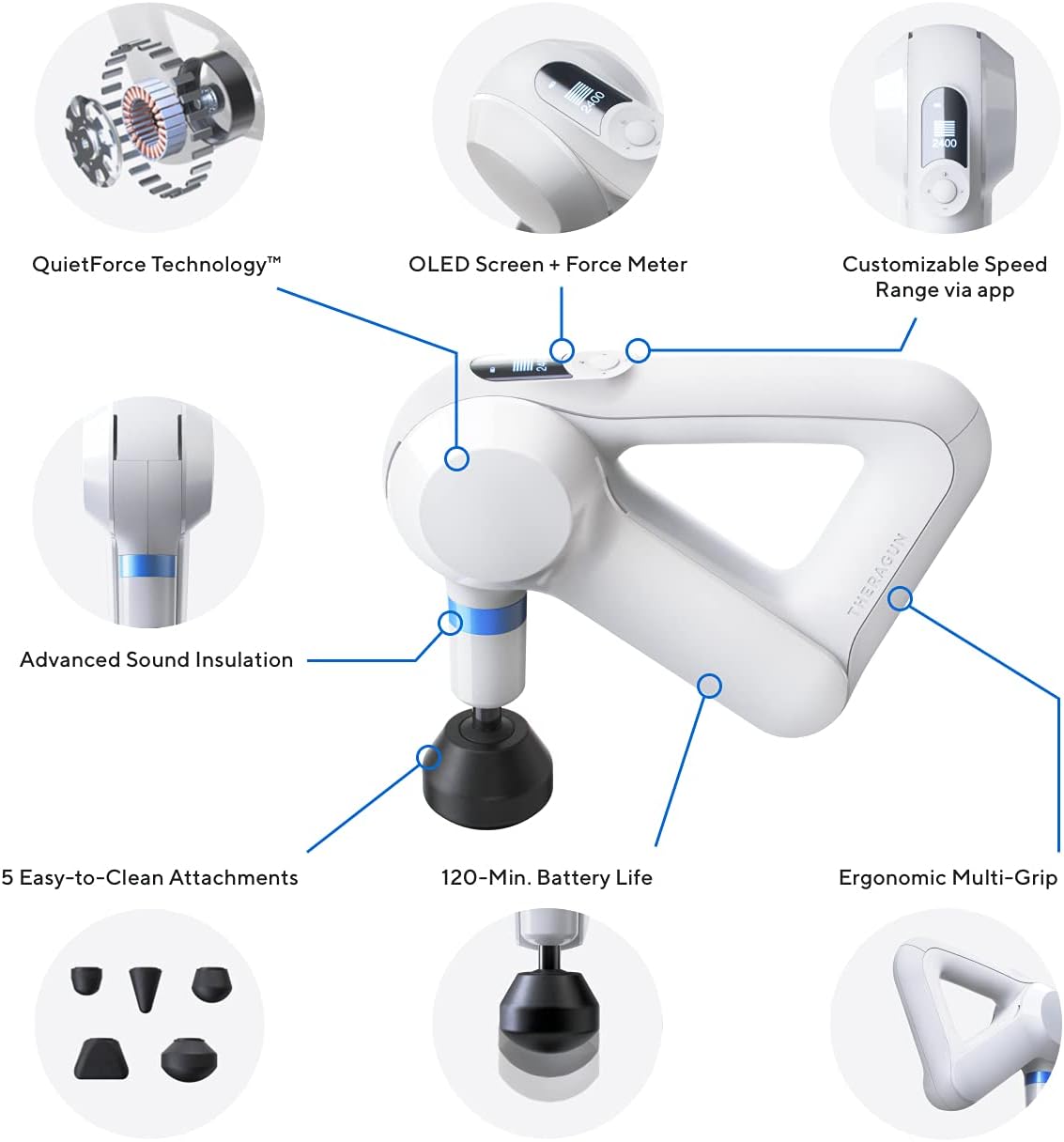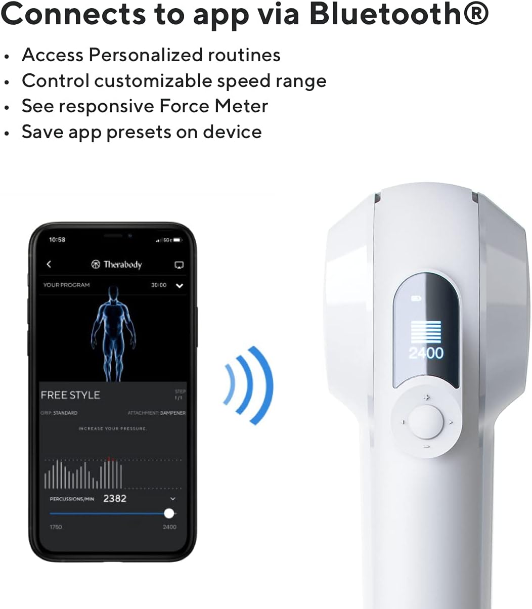 - CUSTOMIZABLE SPEED RANGE & OLED SCREEN - monitor current speed and force on OLED screen, access any speed between 1750-2400 PPMs via Therabody app