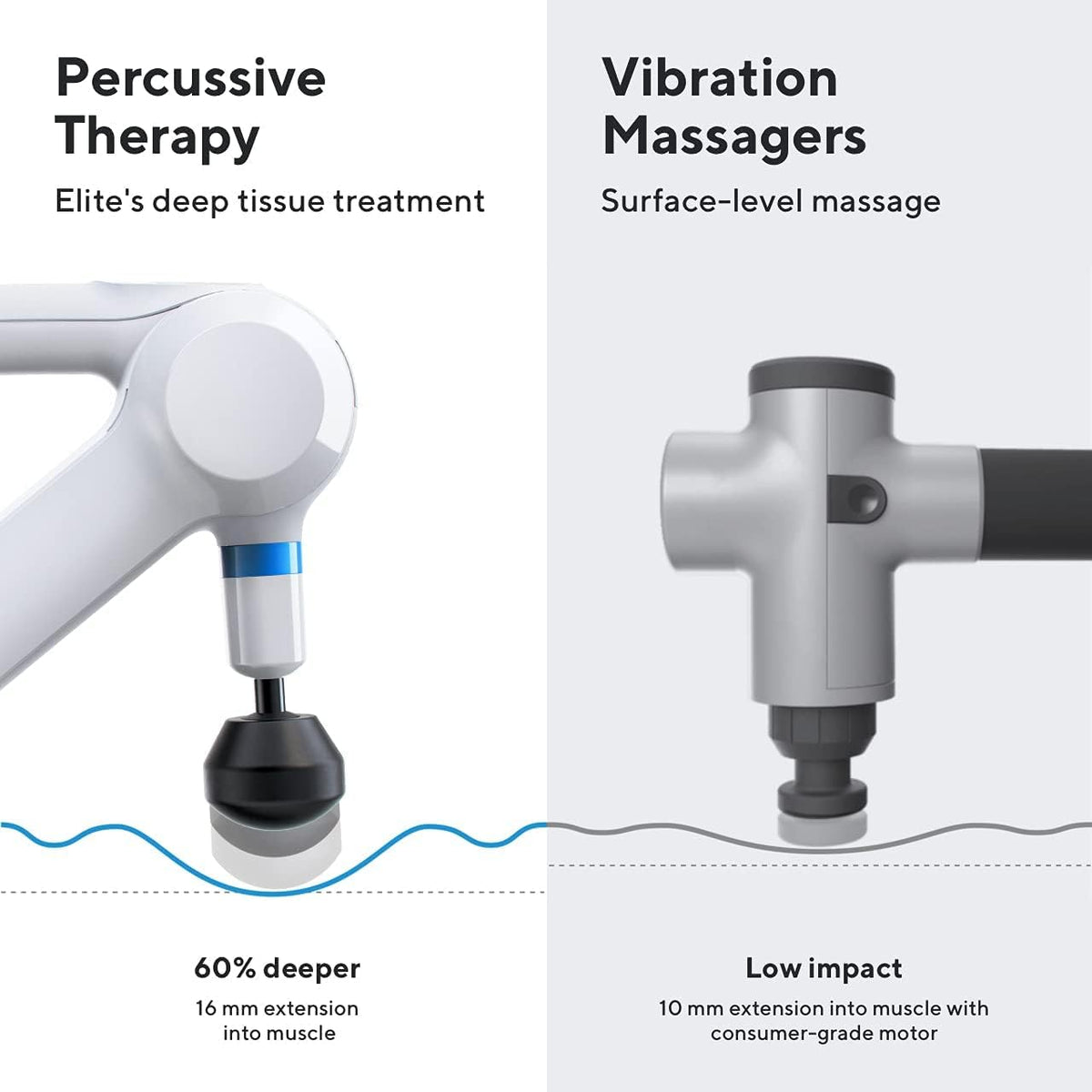 Our powerful deep muscle treatment, in an ultra-quiet smart percussive therapy device with advanced sound insulation and a premium design. The Theragun Elite works deep to melt away tension and release soreness, empowering you to care for your body daily.