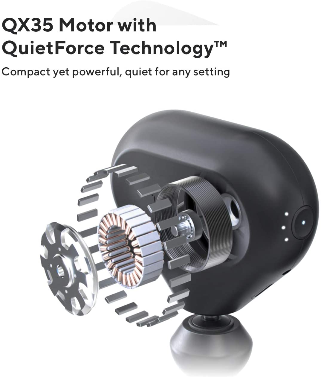 - QUIET FOR ANY SETTING - Proprietary brushless QX35 motor with QuietForce Technology allows powerful yet ultra-quiet muscle treatment anytime, anywhere