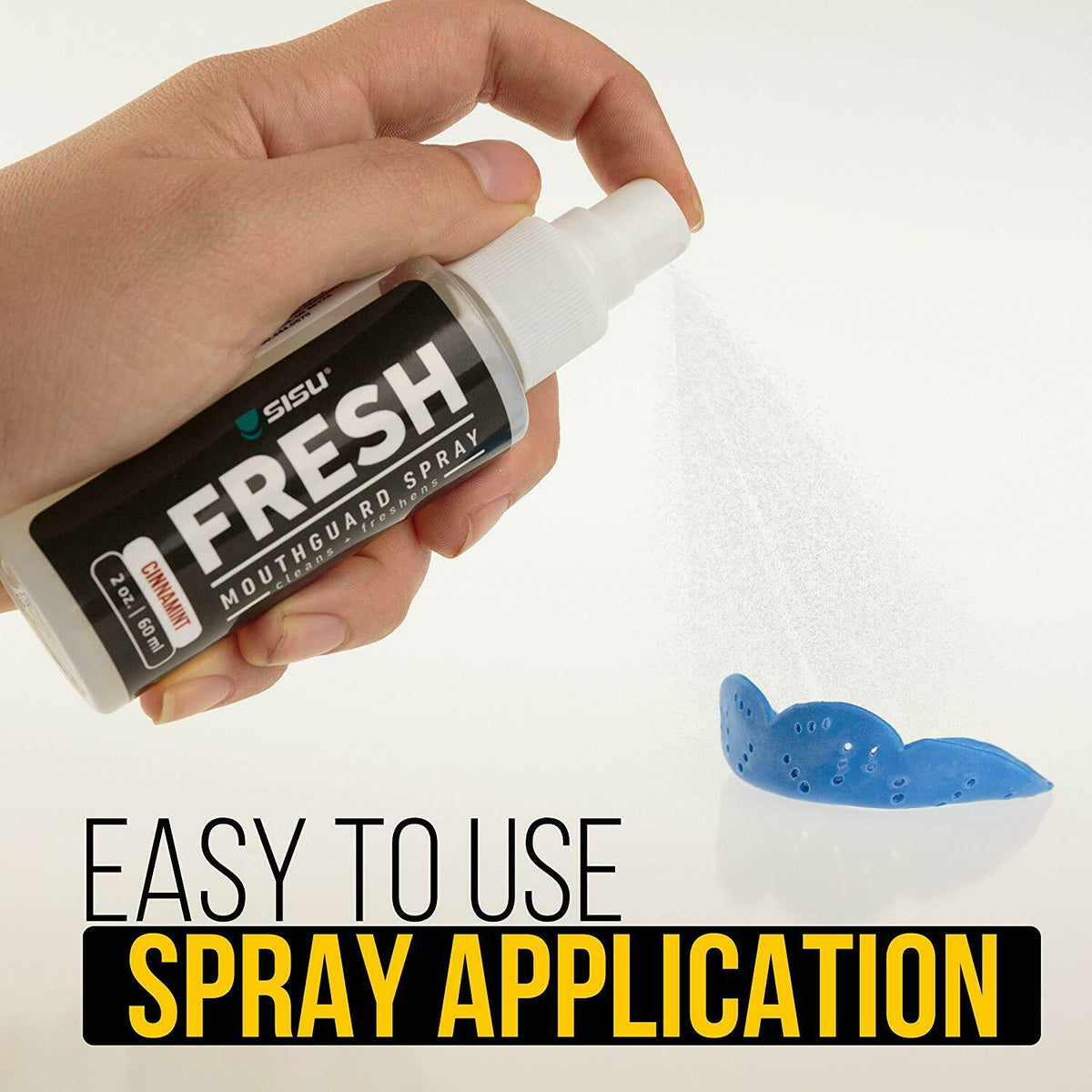 SISU® Mouthguards are the safest, thinnest, and most comfortable mouthguards on the planet. However, no mouthguard will freshen your breath. That's why we invented SISU FRESH Mouthguard Spray! This rejuvenating cinnamon and mint flavored spray is applied directly to the mouthguard before use, leaving a taste as sweet as victory itself. To clean after use, rinse, spray, and store the mouthguard once it is dry.