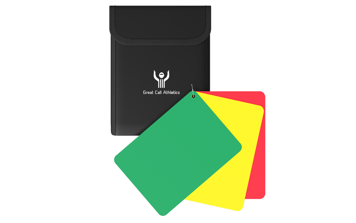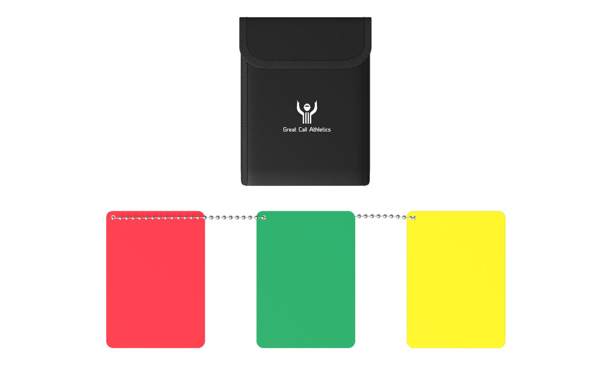Complete Referee Kit: Includes a Red, Yellow, and Green penalty card set, each measuring 2.5" x 3.5" - perfect for sports like Soccer, Field Hockey, Lacrosse, Football, and Hockey. Designed by officials for officials, ensuring professional quality.