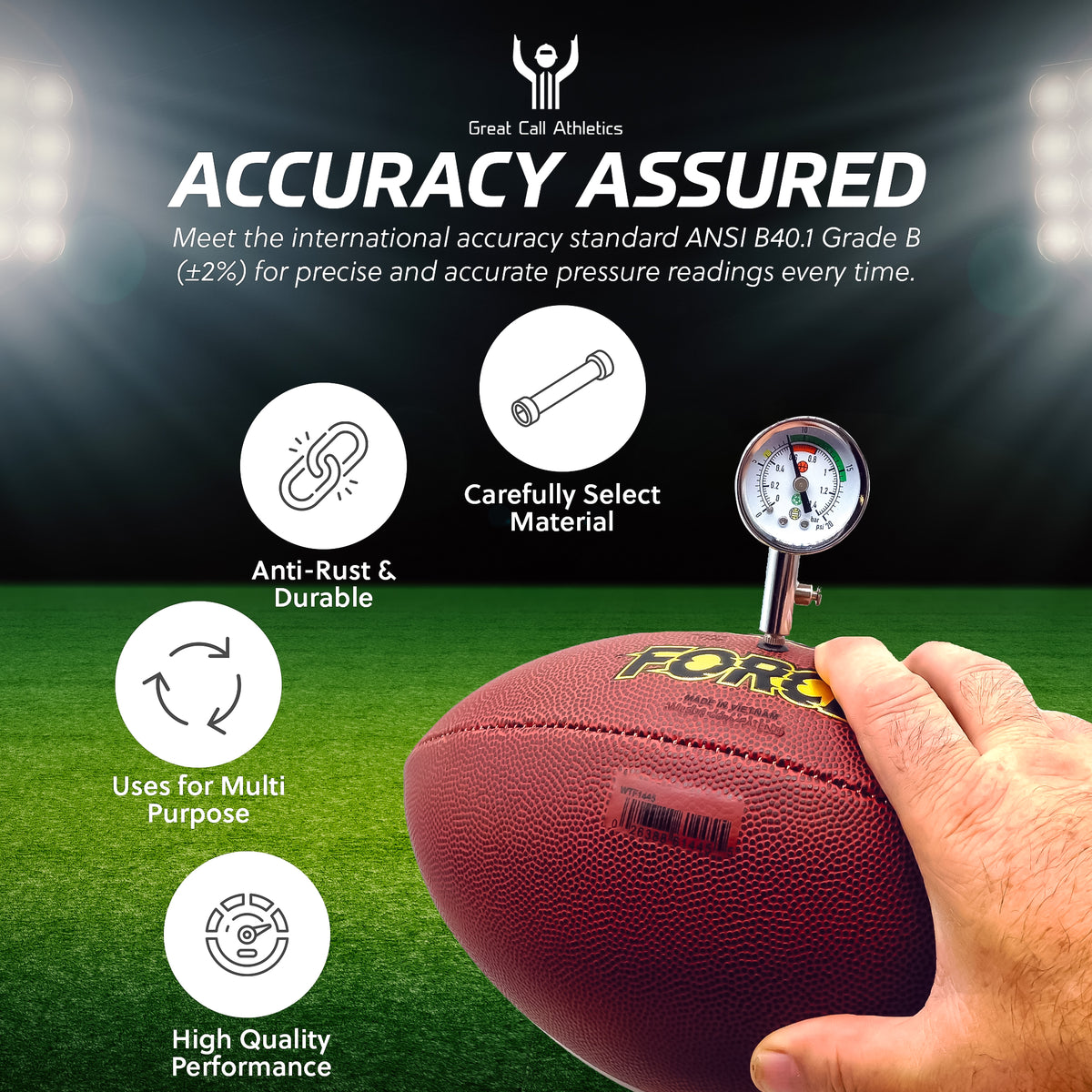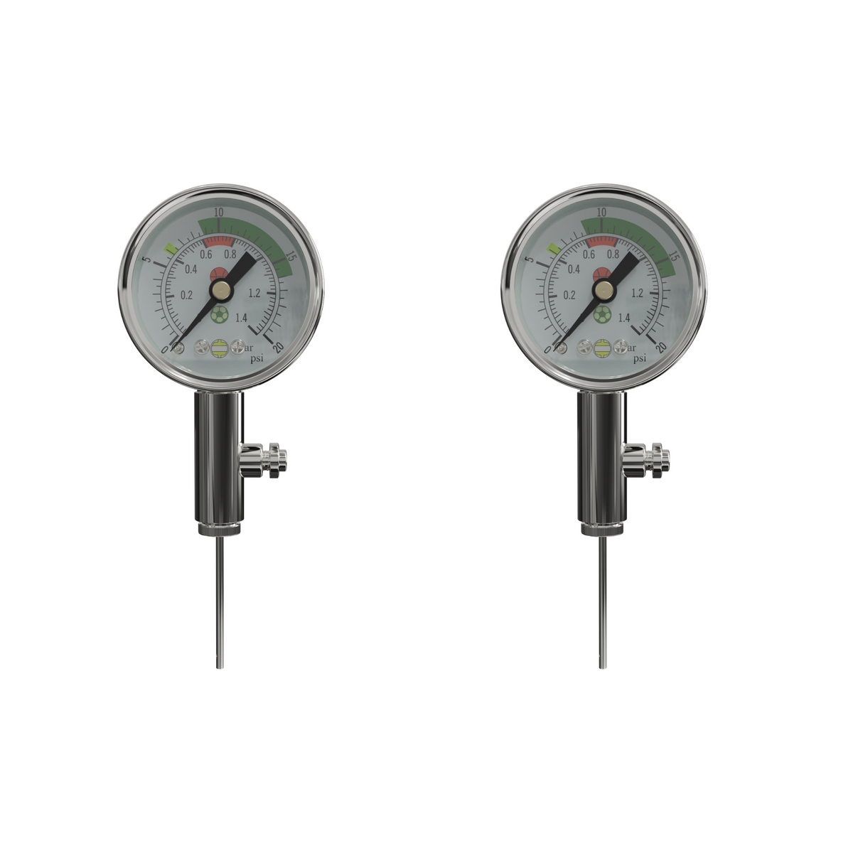 2 PACK: Set of 2 air pressure gauge made of high quality stainless steel. Solid Metal body construction is rust proof, and is built to last! Used by professional leagues, NFHS, and youth organizations!