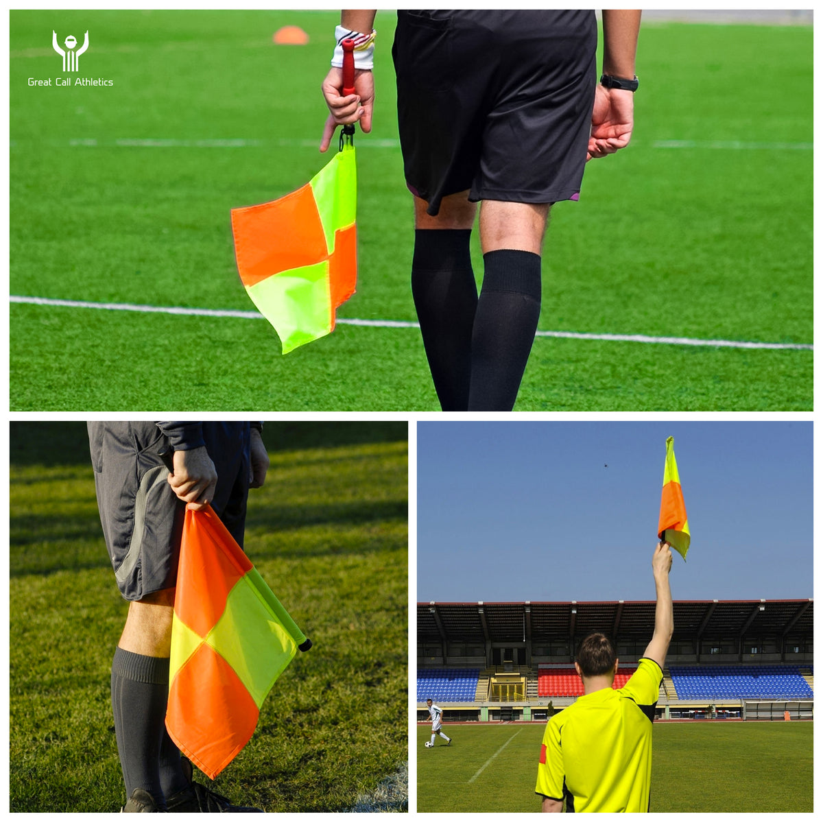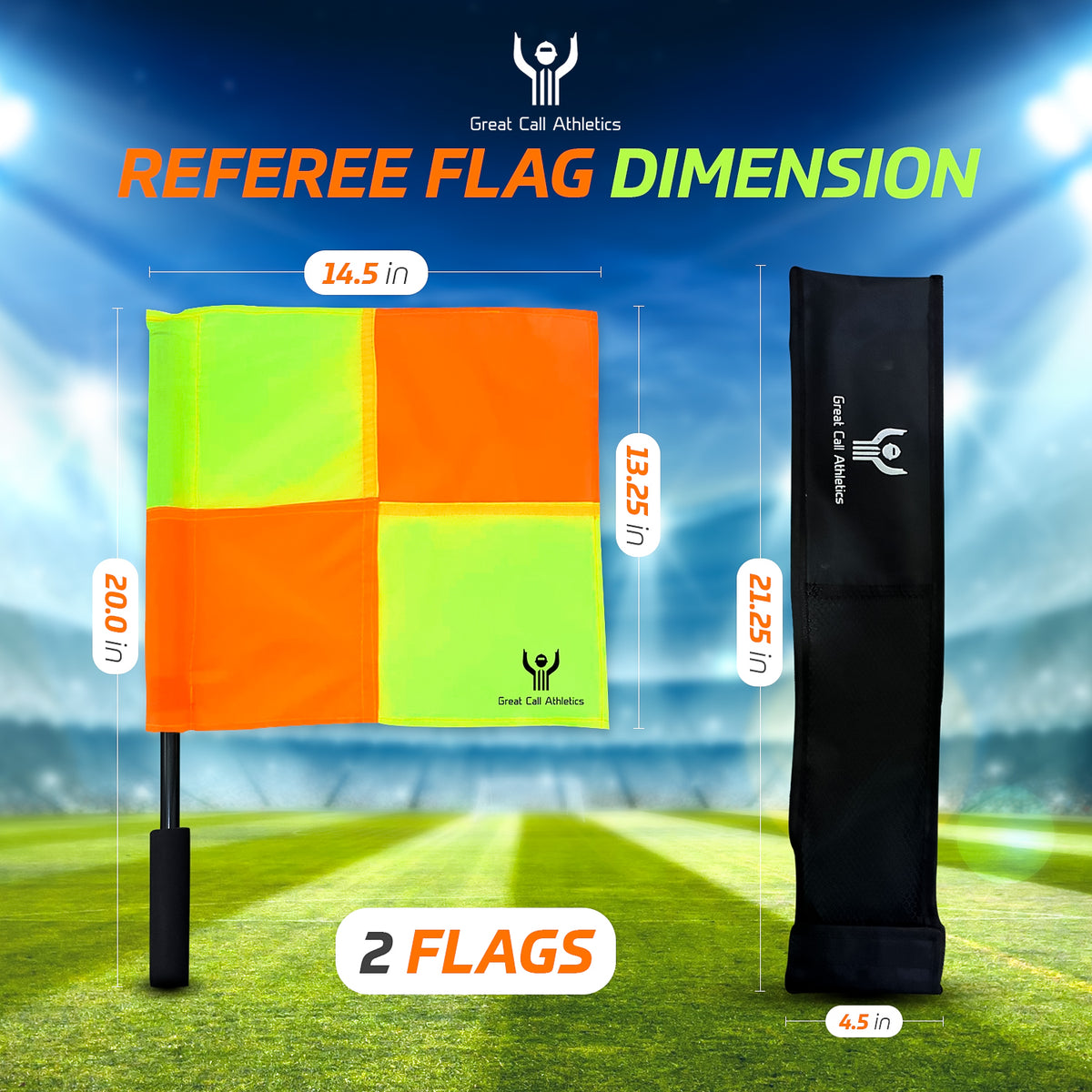 PRECISION: Each Flag is measured 20” length in pole with the flag being 14.5” x 13.25” which is the size choice of the big leagues! These neon ref flags are designed for maximum visibility even on foggy days or when you are officiating night matches.