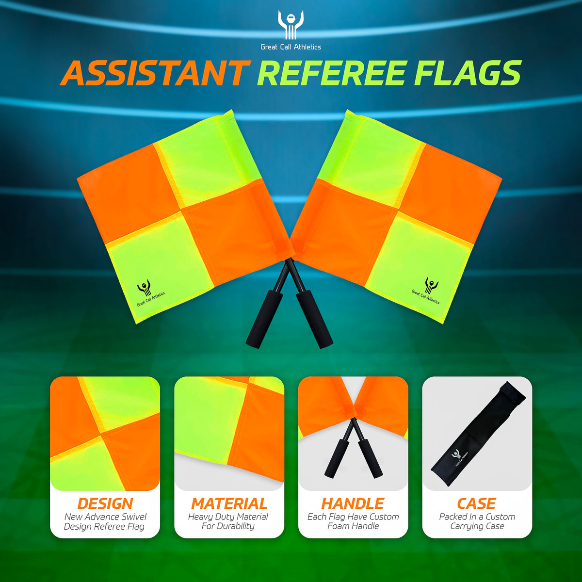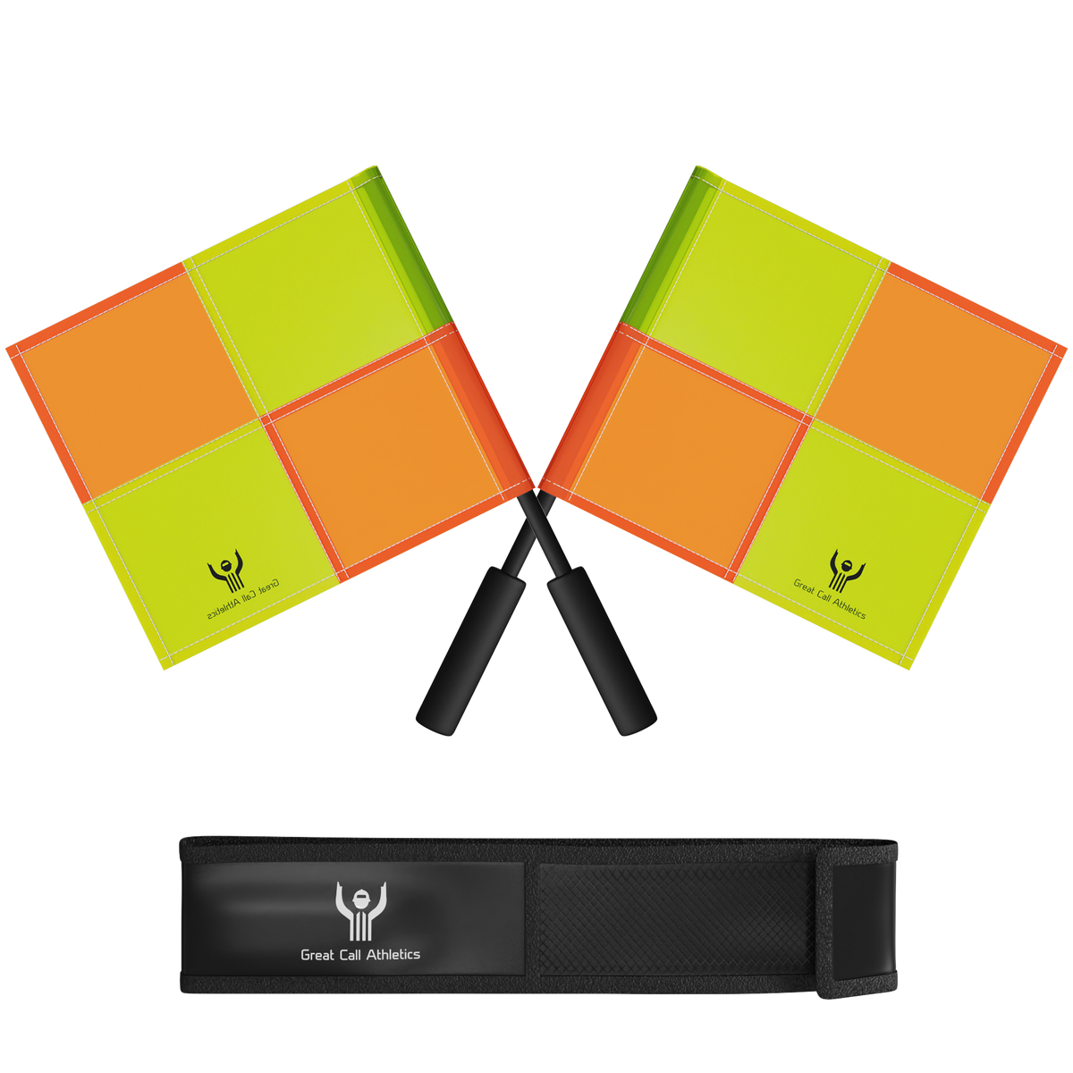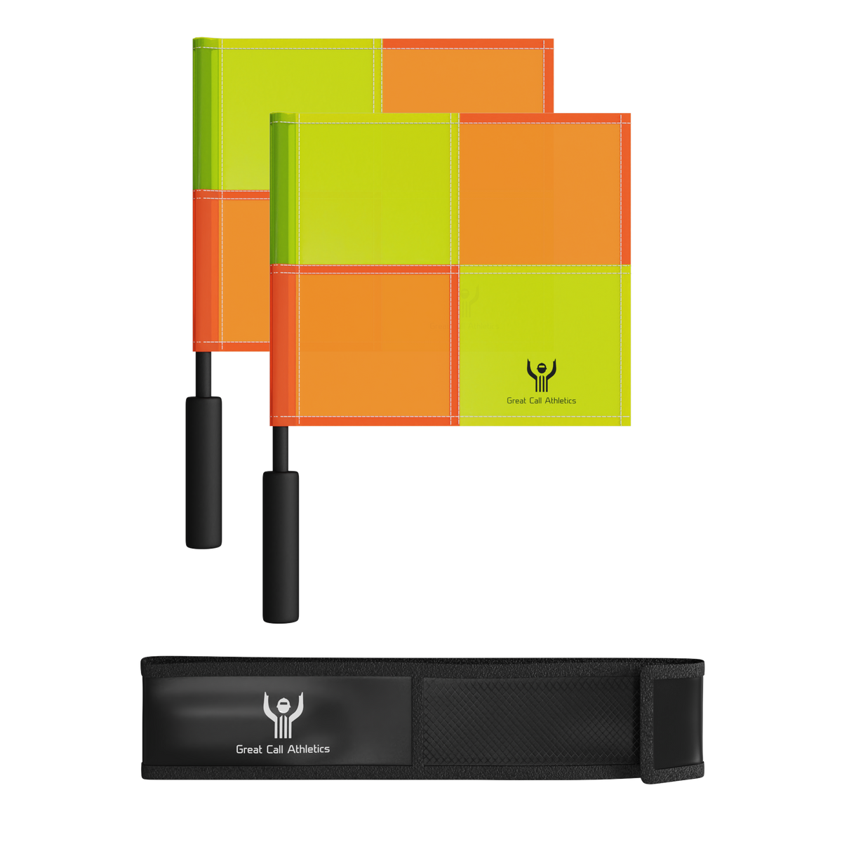 Soccer Referee Flag Pro Set Assistant Linesman Yellow Orange Checkered Flags
