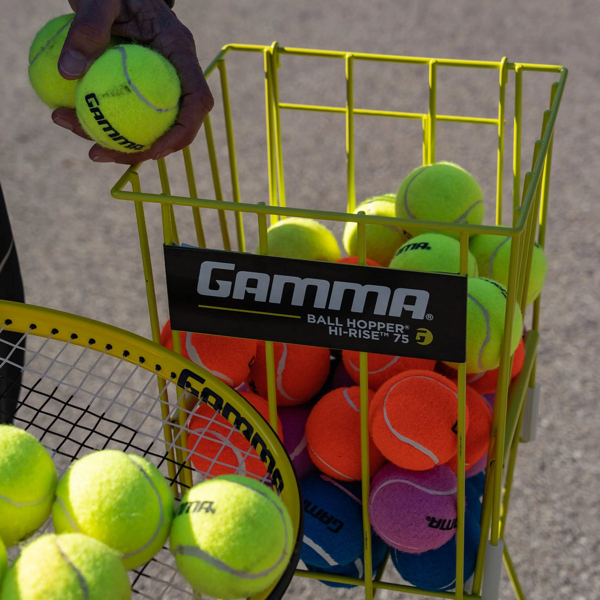 Now with EZ-GO™ Wheels, our #1 selling Hi-Rise basket is the perfect size and capacity for players, parents and teaching pros. This basket features convenient locking handles for easy pickup that flip over to stand basket at fingertip height. The attached lid prevents spilling and the basket holds up to 75 balls.