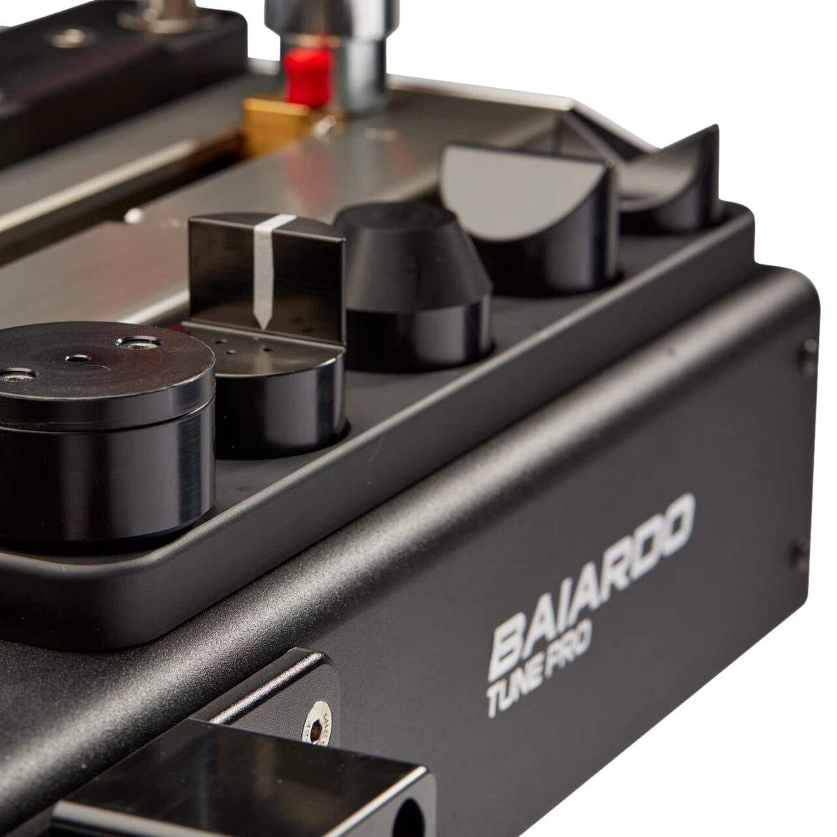 The Baiardo Tune Pro is a revolutionary machine that measures weight, balance, swing weight, and multiple bending properties that allows for quick and efficient racquet property measurement. It also features "Tuning Mode," which is a groundbreaking predictive software that guides users how to change racquet specifications to optimize play. The Actuator Head measures horizontal and vertical bending along with string bed stiffness. String bed stiffness allows users to reveal tension loss and determine the optimal time for restringing. All these features are easy to calibrate to ensure accurate measurements every time.
