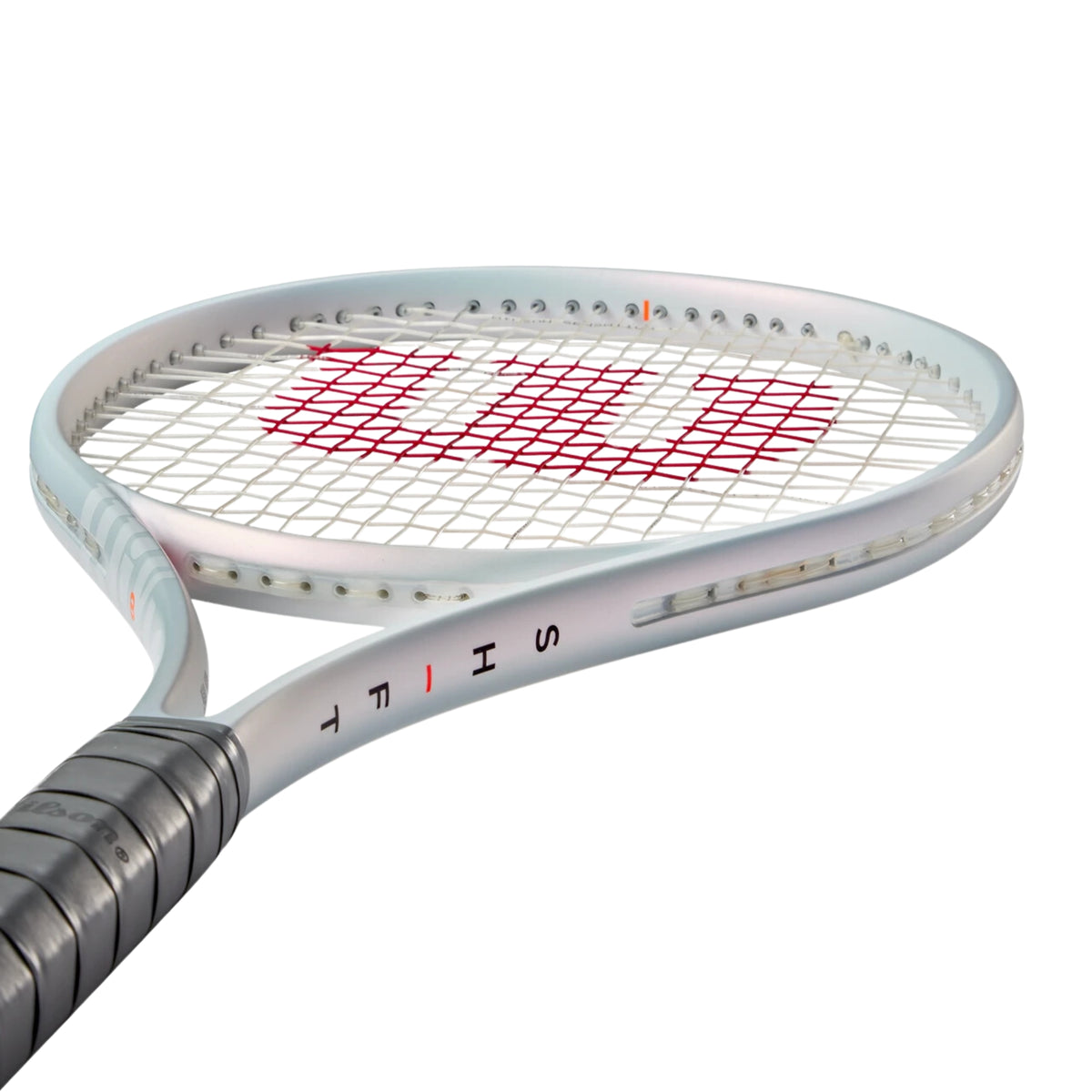 Achieve the ultimate combination of spin and power with the Wilson Shift 99L V1 Tennis Racket. Ideal for intermediate to advanced, all-around players who prefer a slightly lighter frame, the Shift 99L has an innovative string pattern and bending profile built to be stable, yet laterally flexible for controllable power and devastating spin. A first of its kind, the Shift V1 collection was built and refined via player feedback from all over the world. Add in the plant-based materials used throughout the end cap and bumper, this racket will bring your game to the next level.
