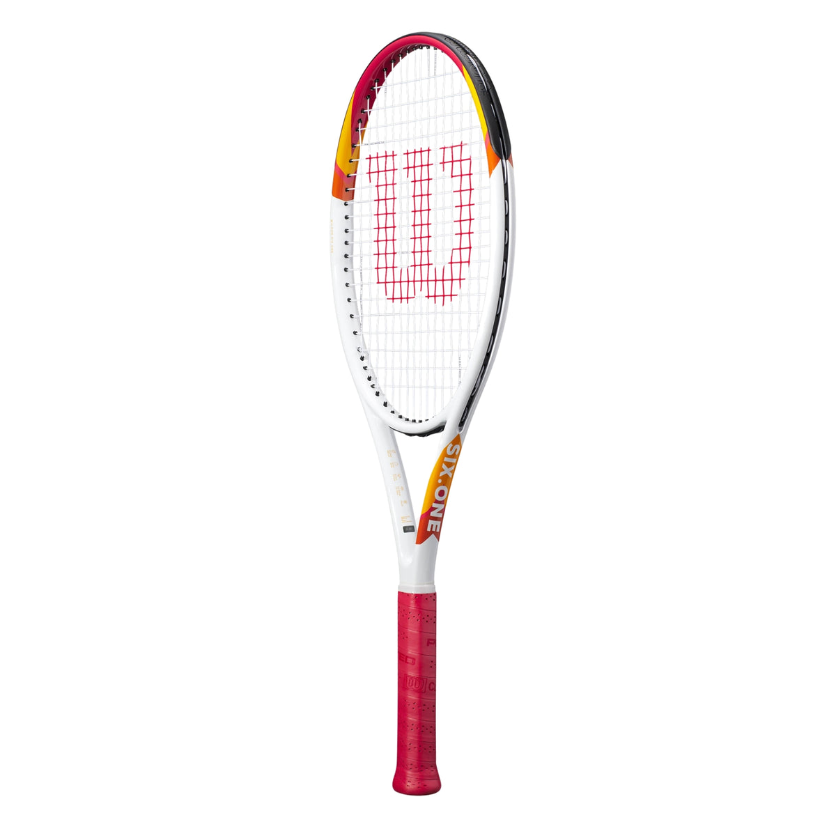 Step your game up to the next level with the Six One Tennis Racket. Another tennis racket in the Six line, it is the perfect fit for players looking for a combination of power, control, and feel. At a slightly lighter weight than the Six LV, this racket is more arm-friendly and maneuverable all while generating great pace on the ball. A more closed string pattern also allows players to get the extra spin on their shots without compromising their strokes. Comes pre-strung and with a Cushion Aire grip that provides maximum comfort while holding the racket.